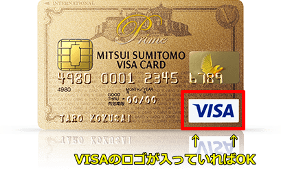 VISAと提携しているクレジットカードというのは、下の図にあるようなクレジットカードのどこかに「VISA」のマークが入っていることです。