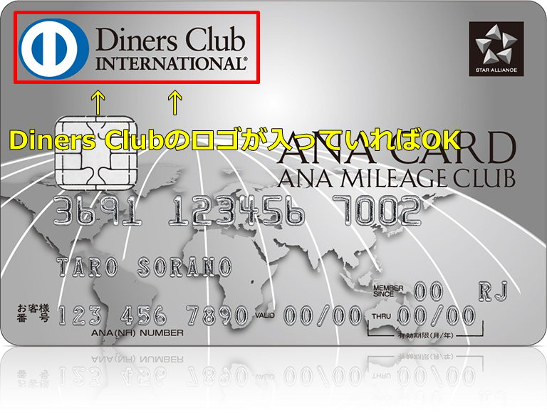 Diners Clubと提携しているクレカというのは、下の図のようなクレジットカードのどこかに「Diners Club」のマークが入っていることです。