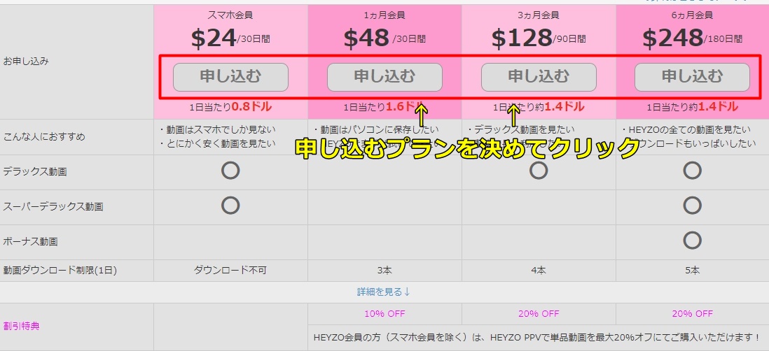 遥とわのアナルAVが楽しめる高画質モザイクなしサイトヘイゾウの入会案内ページに移動すると、各プラン説明の下に「申し込む」と言う文字が表示されていますので、