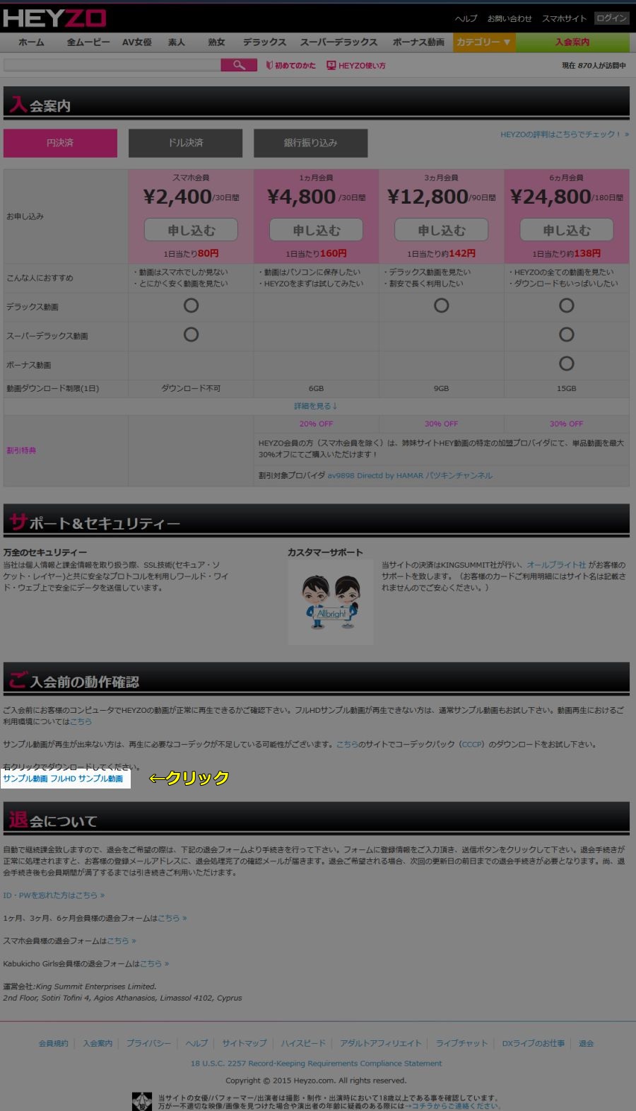 初めに、HEYZO(ヘイゾー)の入会案内ページを開いてください。